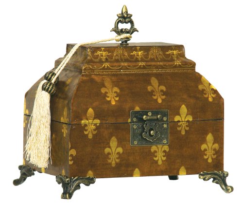 Sterling Home 89-2702 Wood Footed Brooch Box with Fleur de Lis Pattern, 9-1/2-Inch Long by 7-3/4-Inch Tall Overviews